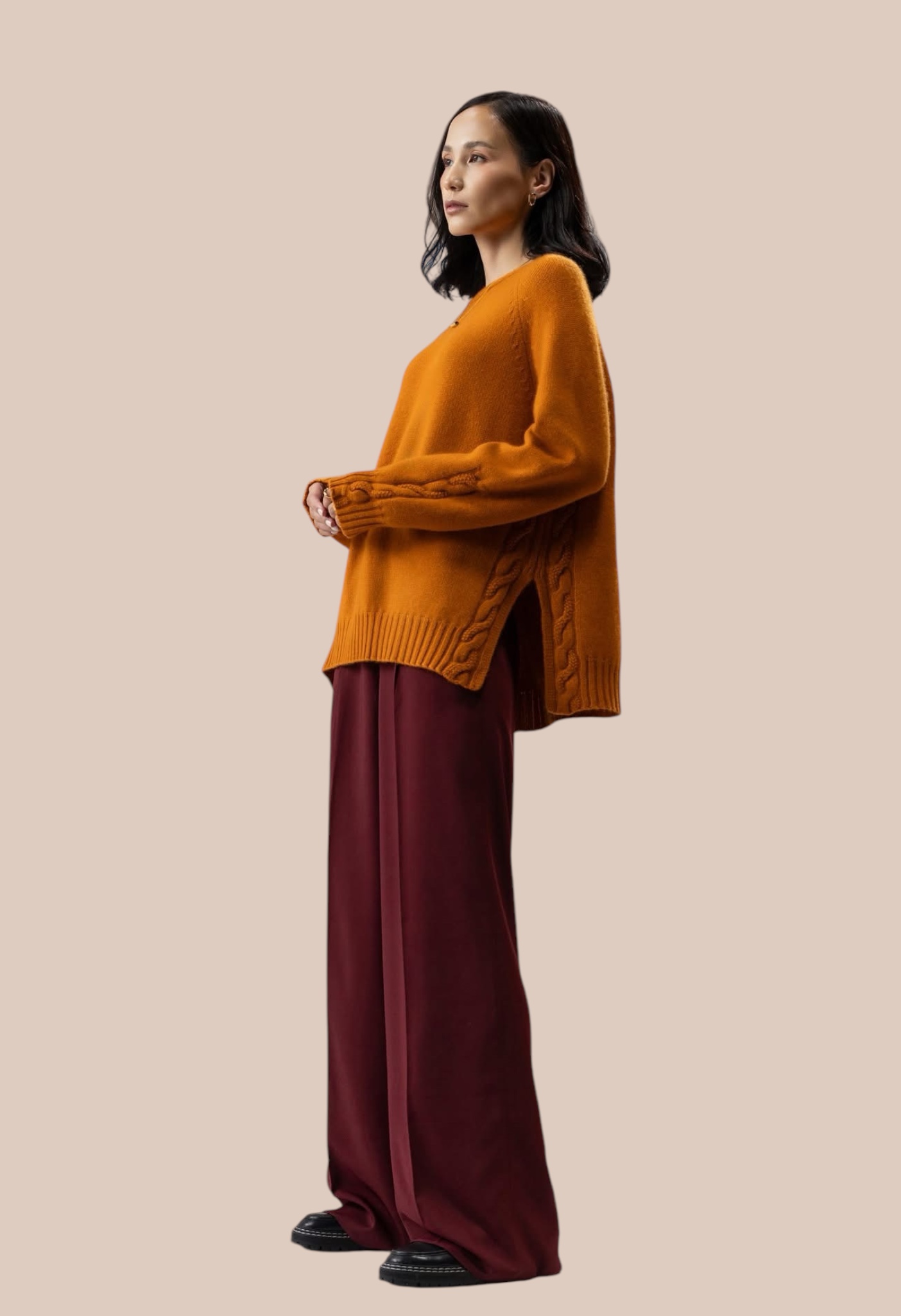 캐시미어100% 꽈빼기 여성 라운드