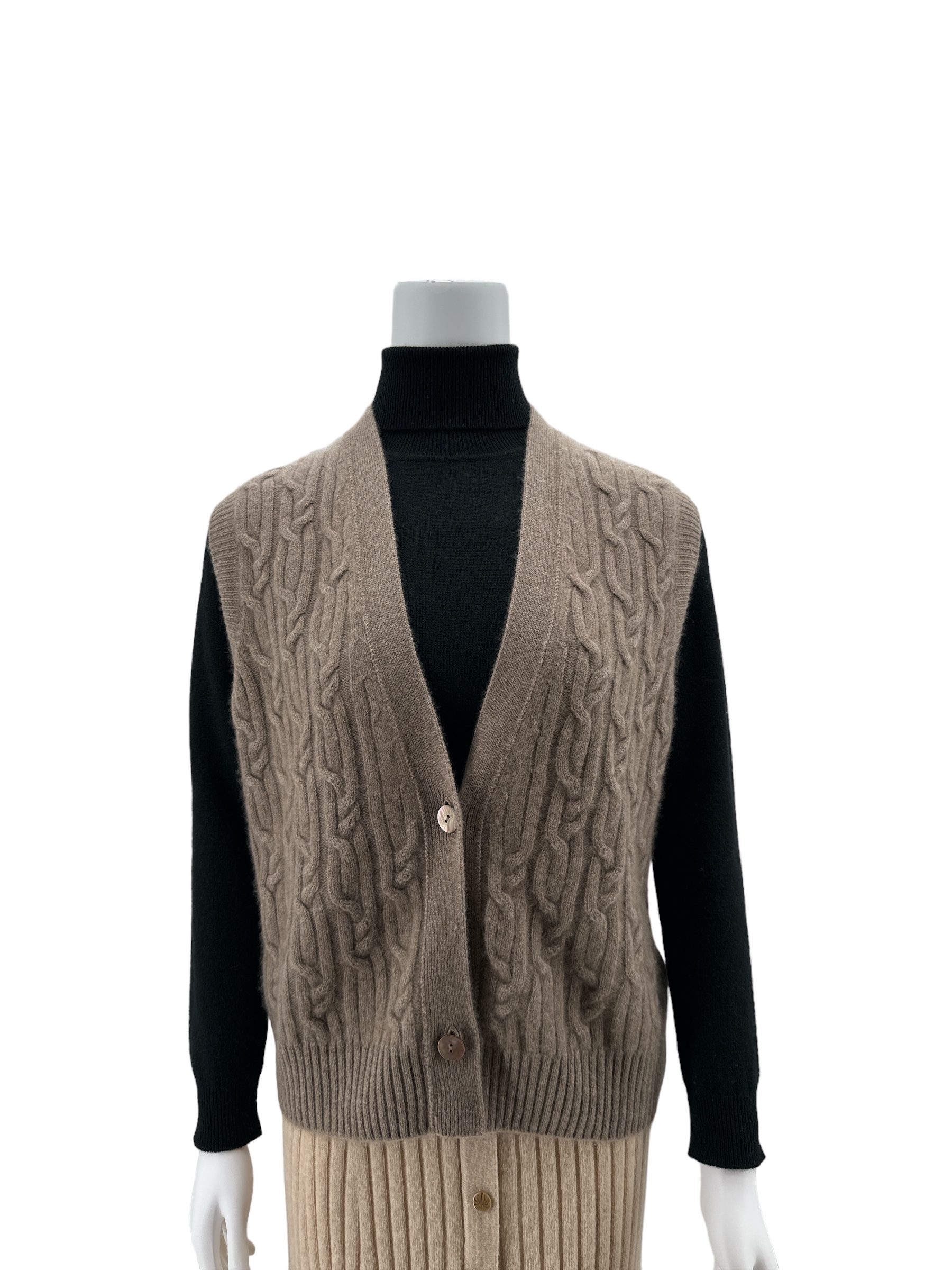 캐시미어 100% 꽈배기 단추 조끼