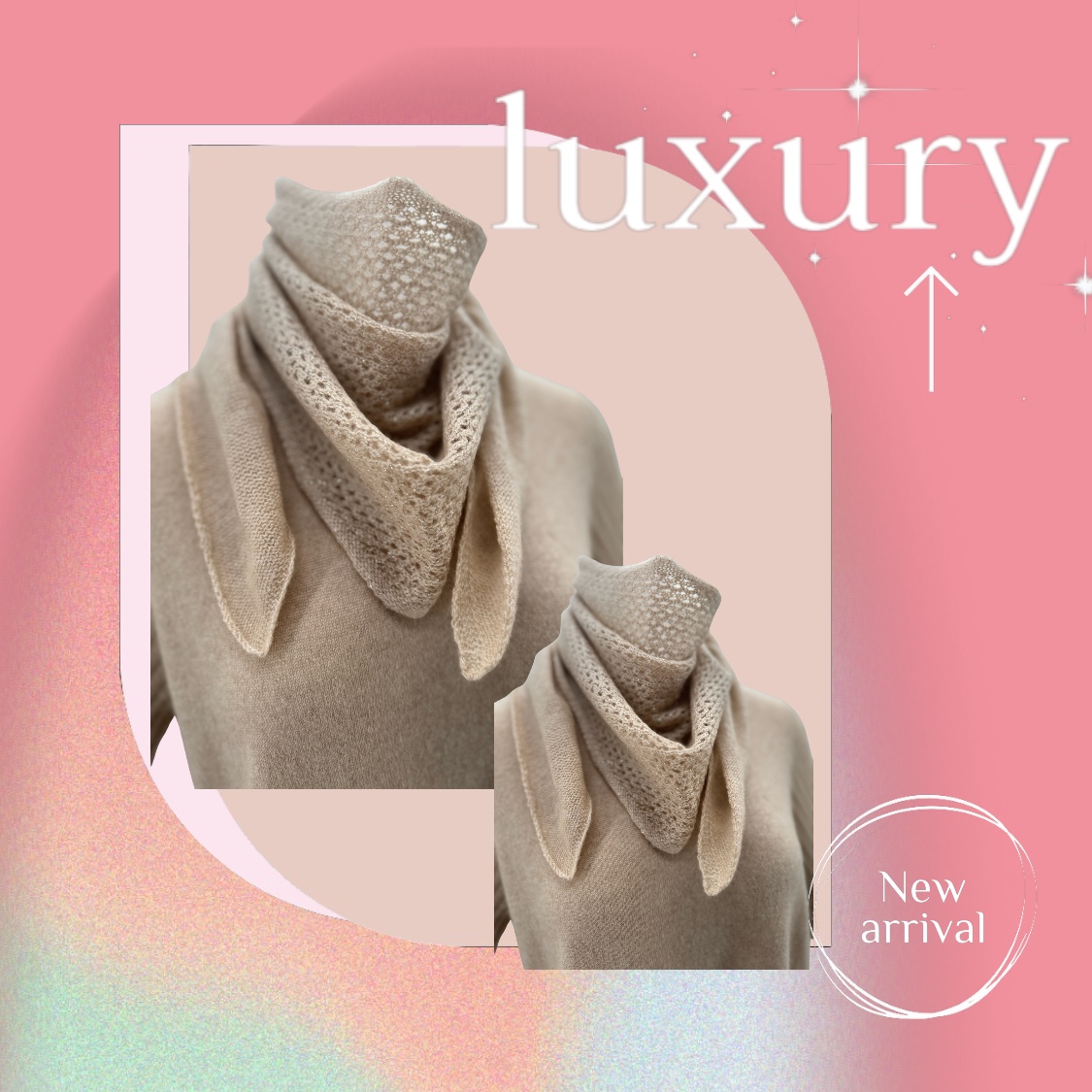 캐시미어100% 메시 골드터치 삼각 스카프.